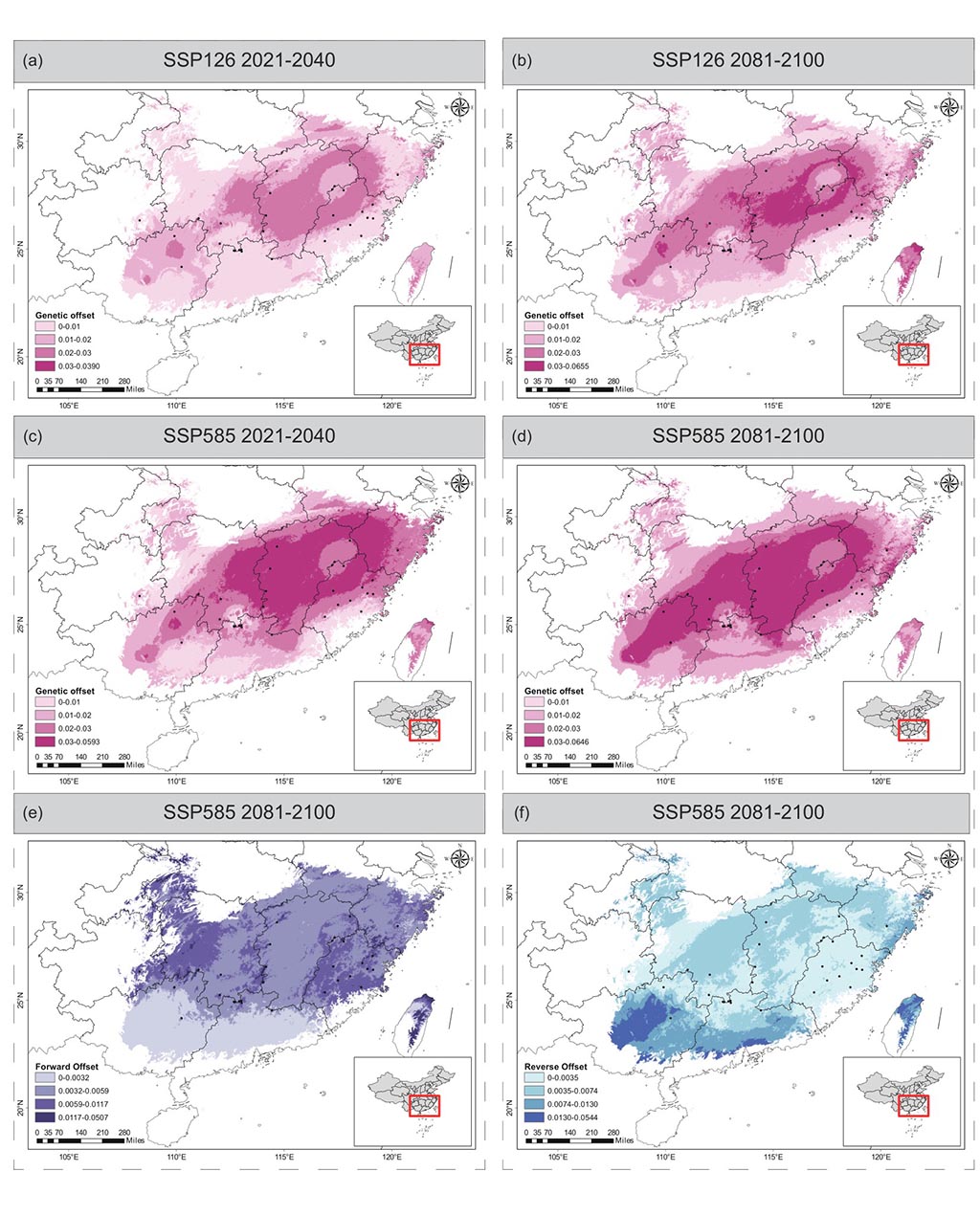 面对全球气候变暖,银钟花的未来命运如何?研究团队利用基因组偏移(Genomic Offset)等模型进行了预测。结果显示,江西西部、福建西部及湖南西南部将是该物种未来的“高风险区”。在高碳排放情景下,这些区域的种群可能因无法适应快速变化的气候而面临局部灭绝的风险。