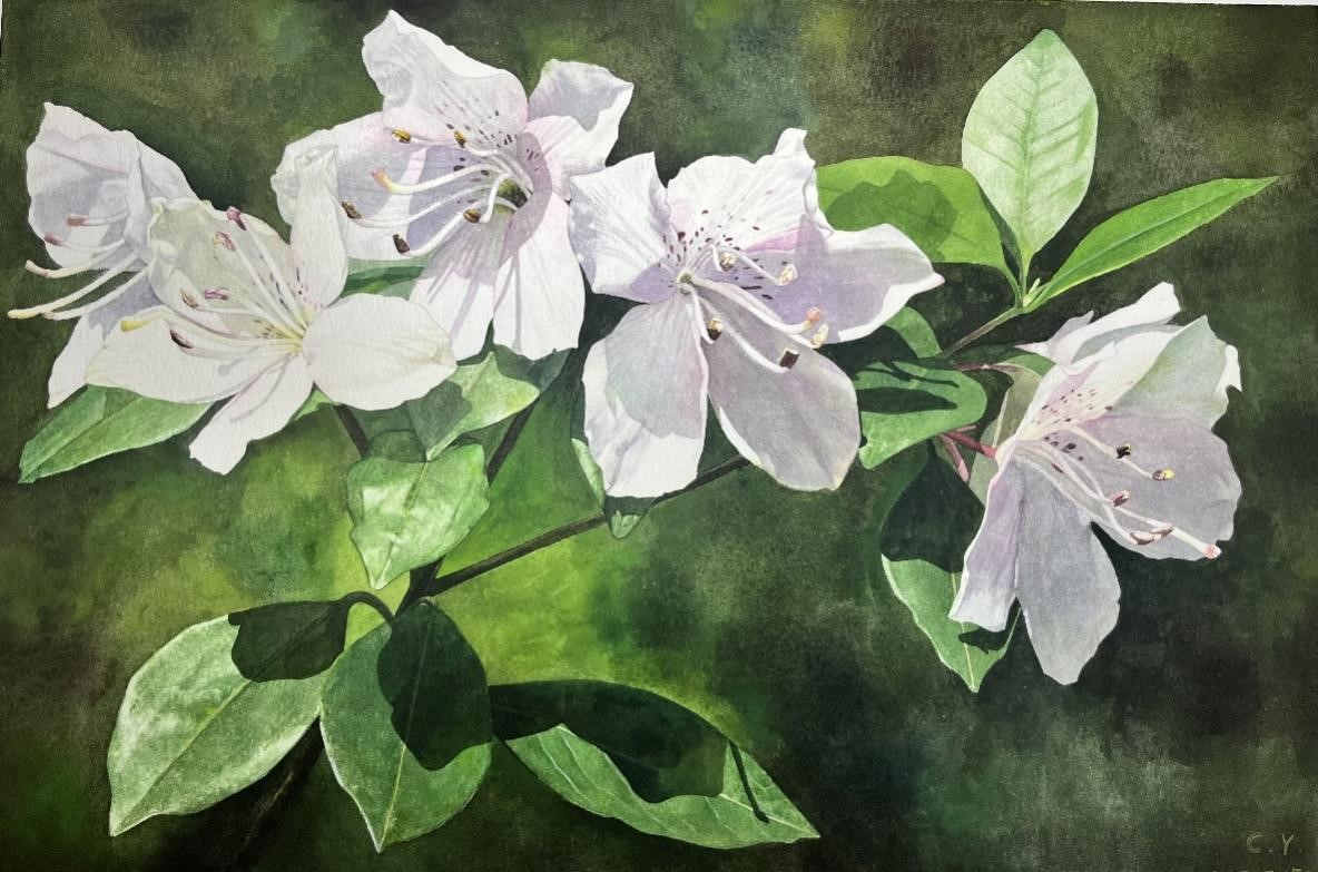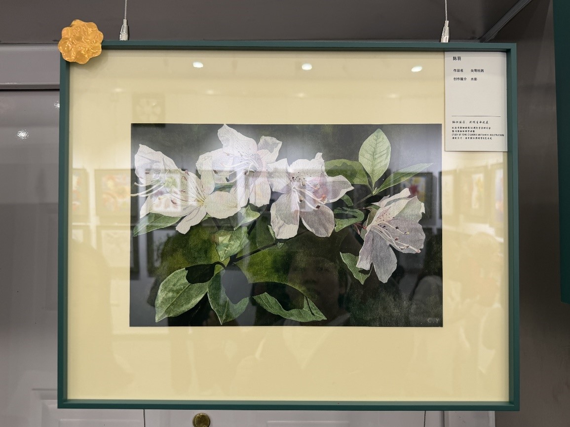 本次画展中植物科学画共评选一等奖2项,二等奖8项。经多轮严格筛选,庐山植物园选送的水彩作品《尖萼杜鹃》荣获一等奖,该作品由标本馆陈羽创作,已于2026年4月21日在中国科学院植物研究所——国家植物园(南园)正式展出,展期将持续至5月5日。后期,所有获奖作品将在国家动物博物馆、牛津大学植物园等展馆依次展出,具体展出安排将另行通知。